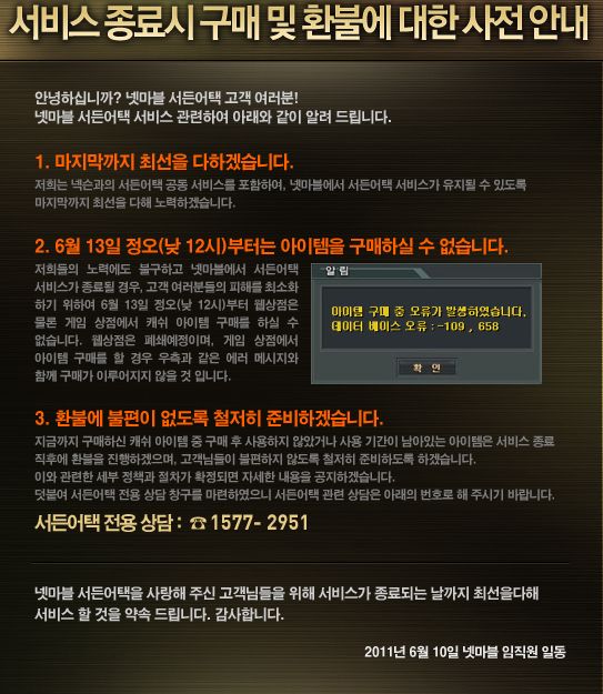 현재 나온 최신 공지. 아직 환불에 대해서는 말을 못했지만 해줄 것으로 보인다. 13일 즈음에 공지가 나올 듯.
