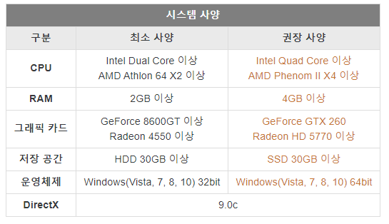 시스템 사양