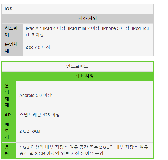 Android 하스스톤의 최소 사양은 Android 5.0이상, 4GB 이상의 내부 저장소 여유 공간.