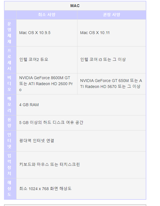하스스톤은 신규 확장팩 출시에 따른 신규 카드, 신규 효과가 추가됨에 따라 점점 더 소프트웨어가 무거워지고 있고 용량이 증가하고 있으므로 위 사양 정보는 언제든 변경될 수 있다.
