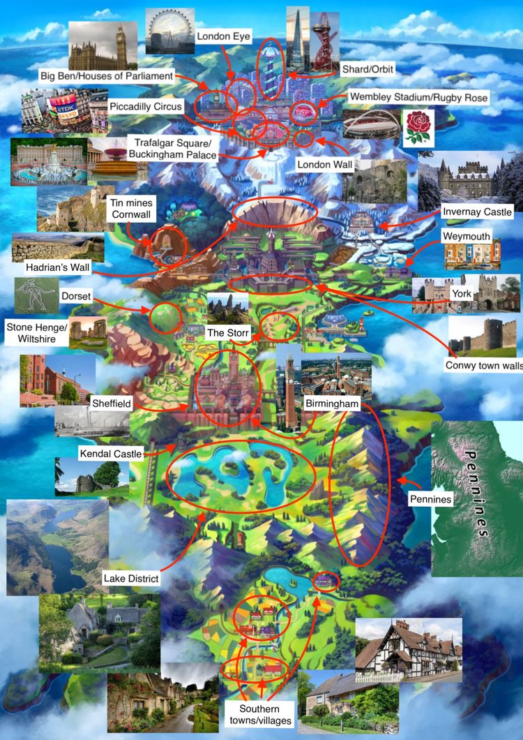 루드 맨에서 아이디어를 따온 것으로 보이는 지상화나 빅 벤 같은 영국의 명소와, 런던, 맨체스터, 버밍엄 등의 지역에서 모티브를 딴 걸로 추정되는 장소들이 나왔다. 영국의 산업 혁명을 상징하는 듯한 붉은 벽돌 건물이라든가 거대한 톱니바퀴, 증기기관 등도 보인다. 특히 시작부분에 해당하는 남부의 농경촌부터 산업 혁명이 한창인 근대를 거쳐 현대 시대의 최북단으로 가는 것이 꽤 인상적이라는 평가도 있다.