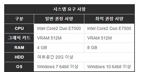 2020년 9월 17일 업데이트로 클라이언트가 64비트로 변경되어 32비트 운영체제에서의 실행이 불가능해졌다. 해당 업데이트 이후 클라이언트가 사용하는 메모리양이 거의 8GB까지도 올라가는 상황이기 때문에 시스템 메모리는 최소 8GB, 권장 16GB로 봐야 한다.